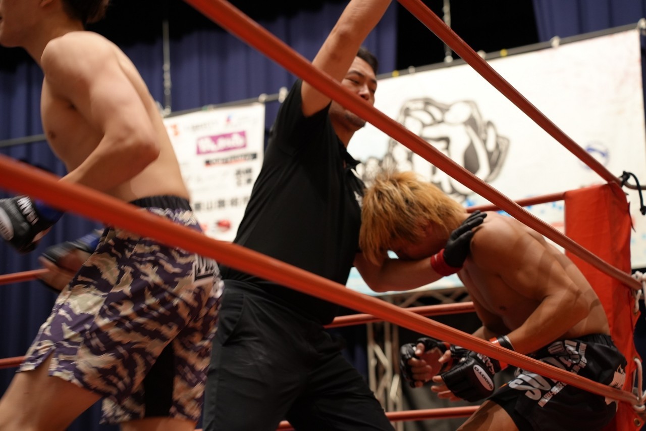 ※優勢ポイント2-1で恵真がトーナメント決勝進出。次戦では佐々木 健吾(ノースキングジム)と宮口 龍鳳(総合格闘技道場コブラ会)の勝者との対戦が決定。